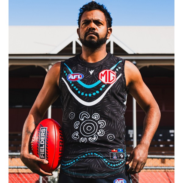 Fans of Adelaide Crows proudly wear their club colours during match days and season events. This jersey features a meaningful design inspired by First Nations storytelling, with patterns that reflect cultural journeys, land, and community through visual elements.