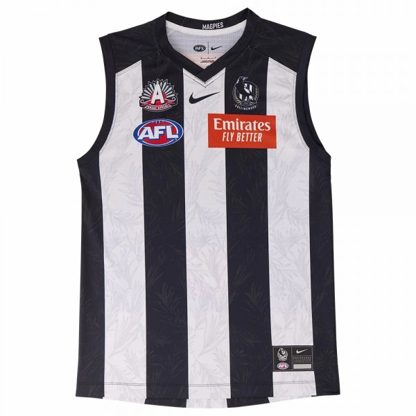 Fans of Collingwood recognise the iconic stripe pattern, and this alternate ANZAC-inspired jersey brings a meaningful layer to the familiar black and white colours.
