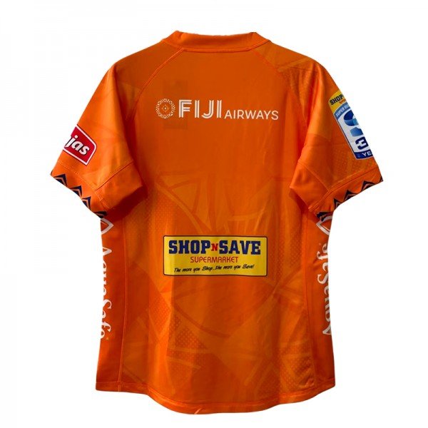 Fans of Fiji Drua proudly wear their club colours during match days and season events. The bold orange look reflects the energy and island spirit that supporters associate with Drua rugby, making this jersey a visible symbol of backing the team wherever games are watched.