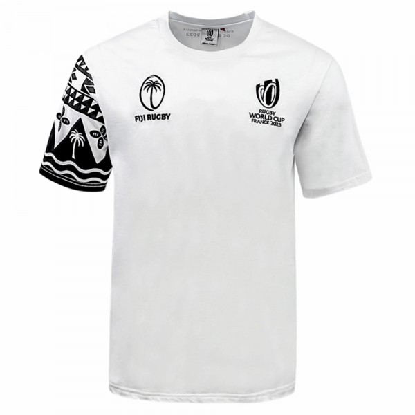 White base with black patterned sleeve, Fiji crest and World Cup logo
