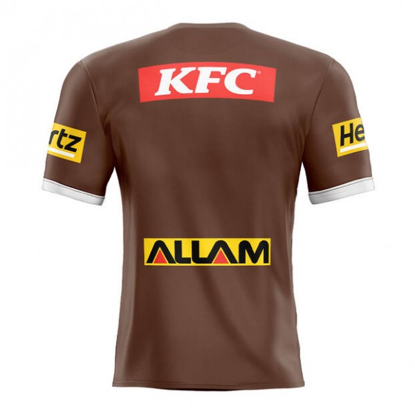 Penrith Panthers supporters are known for their strong following, and this jersey reflects that connection through its brown and white colour combination. The club crest and sponsor branding complete a design recognised by fans.
