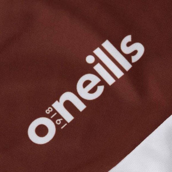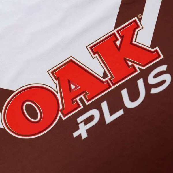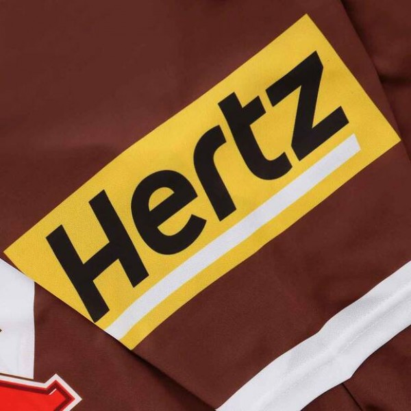 Brown base with white chest panel, sponsor across front and logos on chest