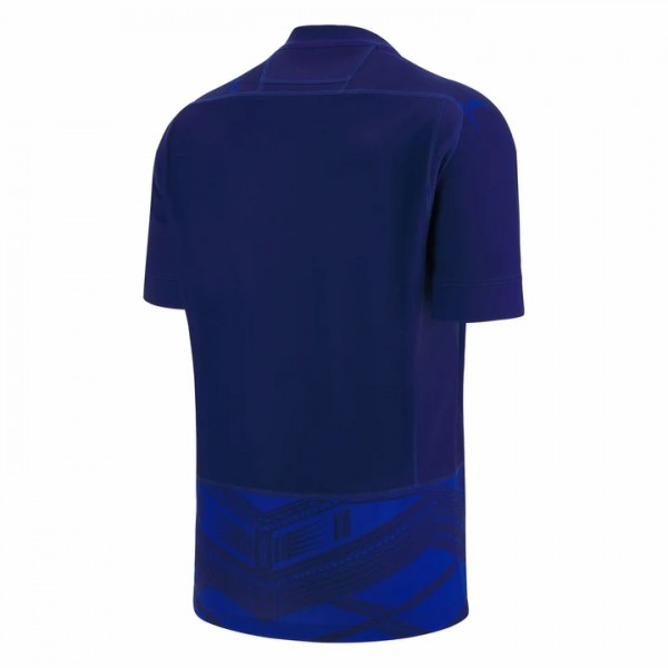 Samoa rugby stands strong with passionate supporters across the globe. The deep blue colour of this jersey reflects unity and pride, with the Manu Samoa crest placed on the chest alongside the Rugby World Cup detail.