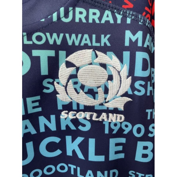 Scotland supporters across the globe celebrate their team pride with every jersey. The striking text graphic pattern across this design reflects the passion of Scottish rugby culture and gives fans a bold way to represent their team.