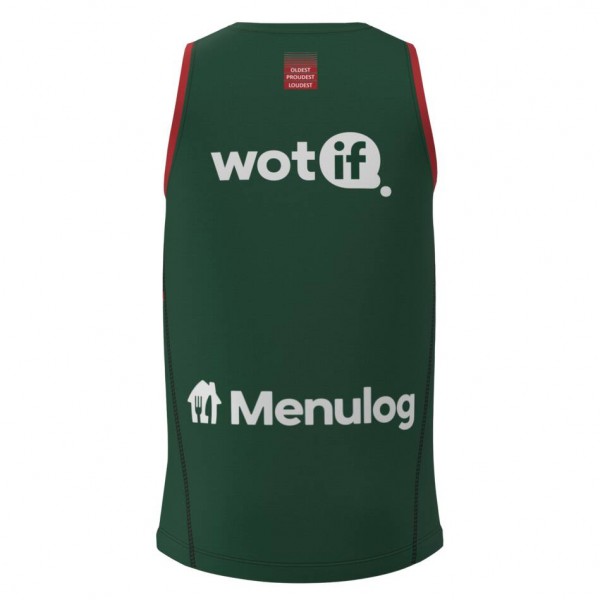 South Sydney Rabbitohs supporters know the pride that comes with wearing the club’s green and red. This training singlet reflects that connection, with bold colours and visible sponsor graphics that stand out among fans worldwide.