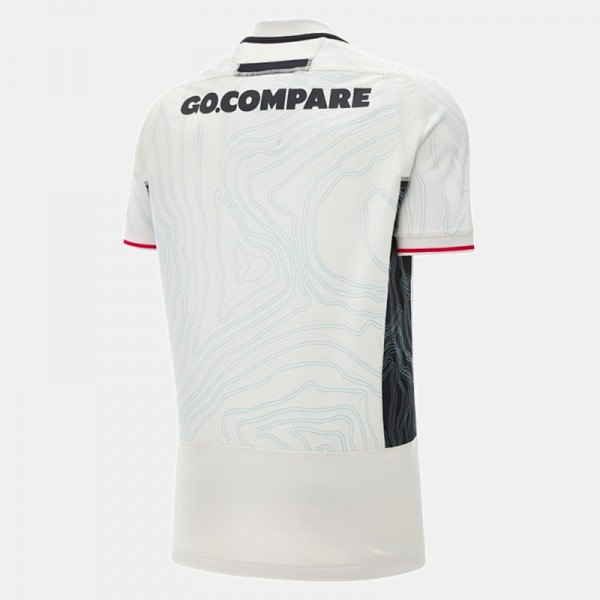 The off-white away look gives Wales supporters a different match day option while keeping the team easy to recognise. With the red WRU crest, red sponsor mark, and blue contour pattern across the body, Wales fans can clearly link this jersey to the side they follow.